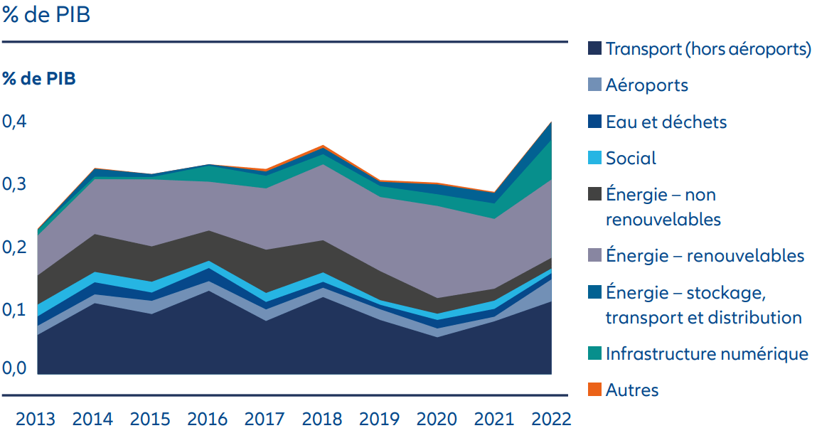 Pour de nombreux pays, la transition énergétique reste une priorité. L’augmentation des déficits budgétaires nationaux et la demande d’investissements visant à accélérer la modernisation des infrastructures dans le contexte de la transition énergétique nécessiteront des capitaux privés. Les investisseurs institutionnels disposant d’une longue expérience en matière d’infrastructures et d’une vision à long terme peuvent devenir les moteurs des performances financières et économiques futures.