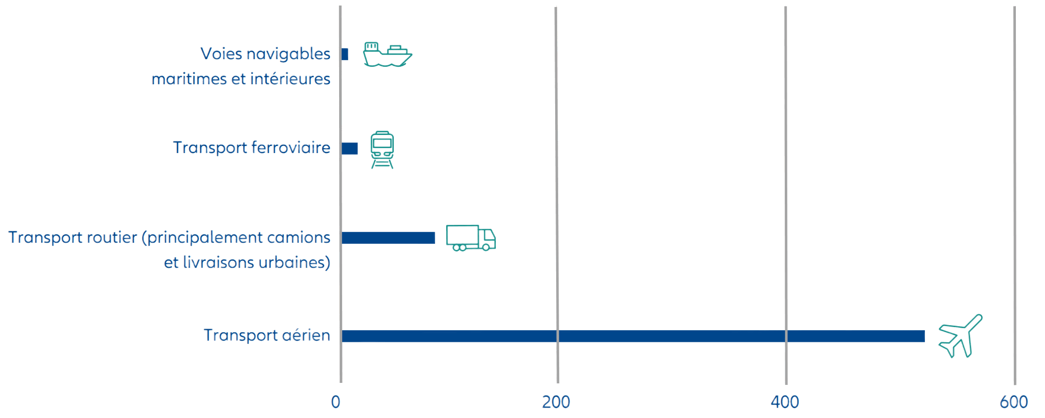 Graphique 1 : Intensité (en kg) des émissions de carbone du fret mondial par milliard de tonnes-kilomètres en 2020
