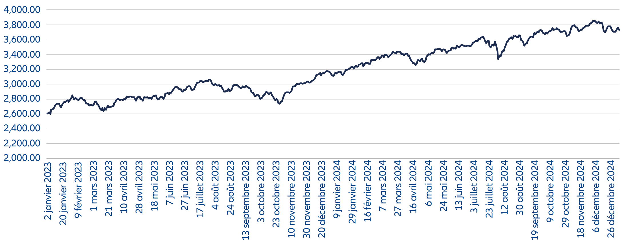 Graphique 1 : Performance MSCI World (USD) - janvier 2023 à décembre 2024