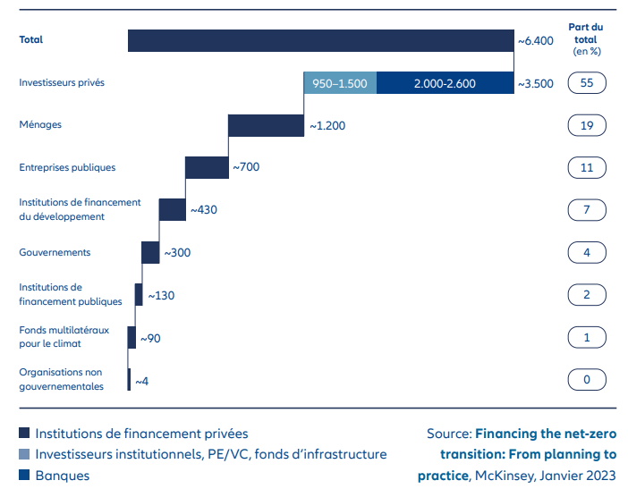 Graphique 2 : les institutions financières privées pourraient financer environ 55 % des besoins d’investissement pour l’objectif de zéro émission nette (2022-2050)